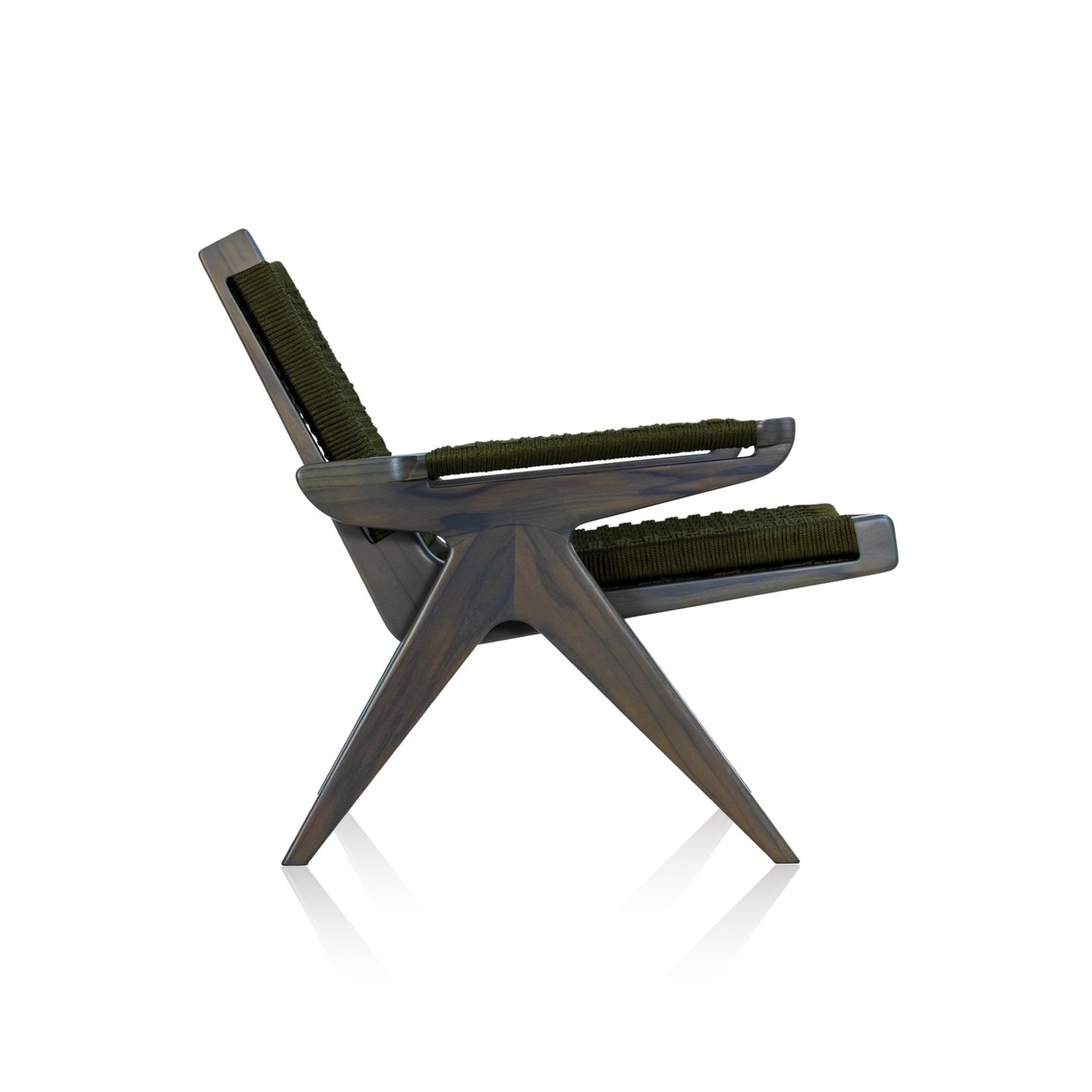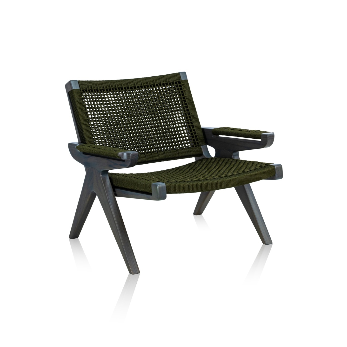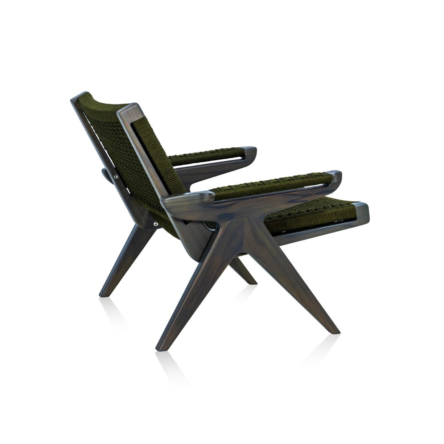 Versão fixa da poltrona Dumont, uma poltrona para áreas de transição entre interno e externo. Com proporções bem orquestradas aliada a uma elegante trama de cordas náutica. Remete ao tradicional mobiliário brasileiro com traços modernistas.