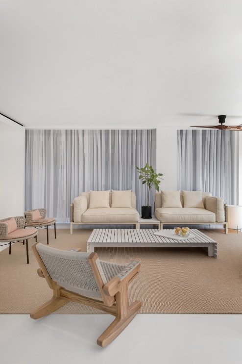 Uma poltrona de balanço para áreas de transição entre interno e externo. Com proporções bem orquestradas aliada a uma elegante trama de cordas náutica. Sua função de balanço é capaz de aconchegar o corpo e auxiliar o usuário ao ato de levantar-se. Remete ao tradicional mobiliário brasileiro com traços modernistas.