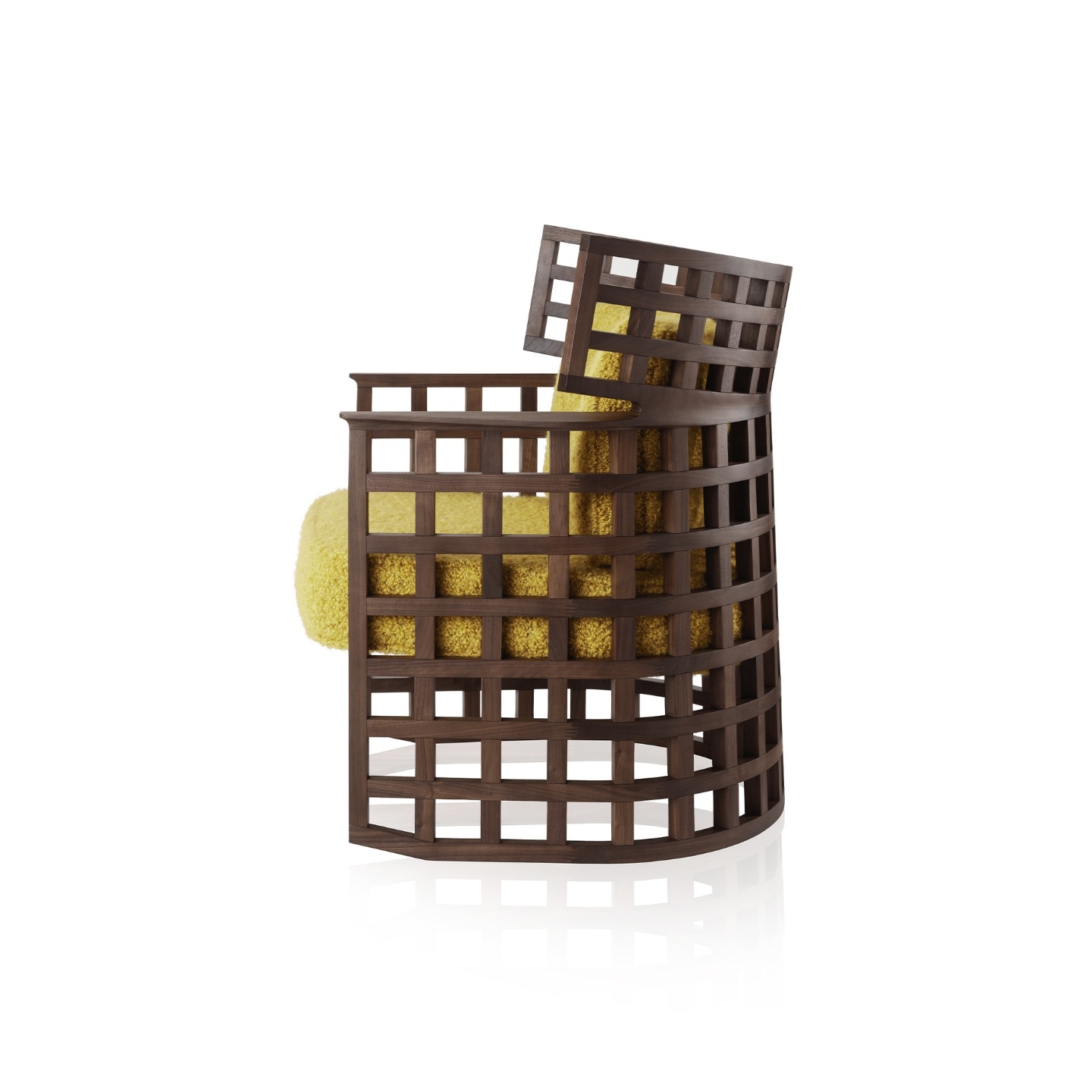 A coleção LACE nasce da abstração de formas, onde cheios e vazios criam uma estrutura que envolve o corpo como um tecido, um ornamento, um casaco que abraça quem se senta. Seu desenho expressivo combina imponência e sutileza, resultando em peças que se destacam tanto pelo inusitado quanto pela elegância silenciosa.