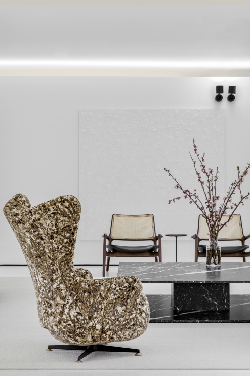 O equilíbrio do ontem e do hoje traduzem precisamente o orquestrado jogo de linhas fluidas, engrossando e afinando para formar um ritmo agradável. A palha rattan é simbólica da leveza do móvel moderno brasileiro e suas curvas suaves proporcionam ao mesmo tempo robustez e sutileza.