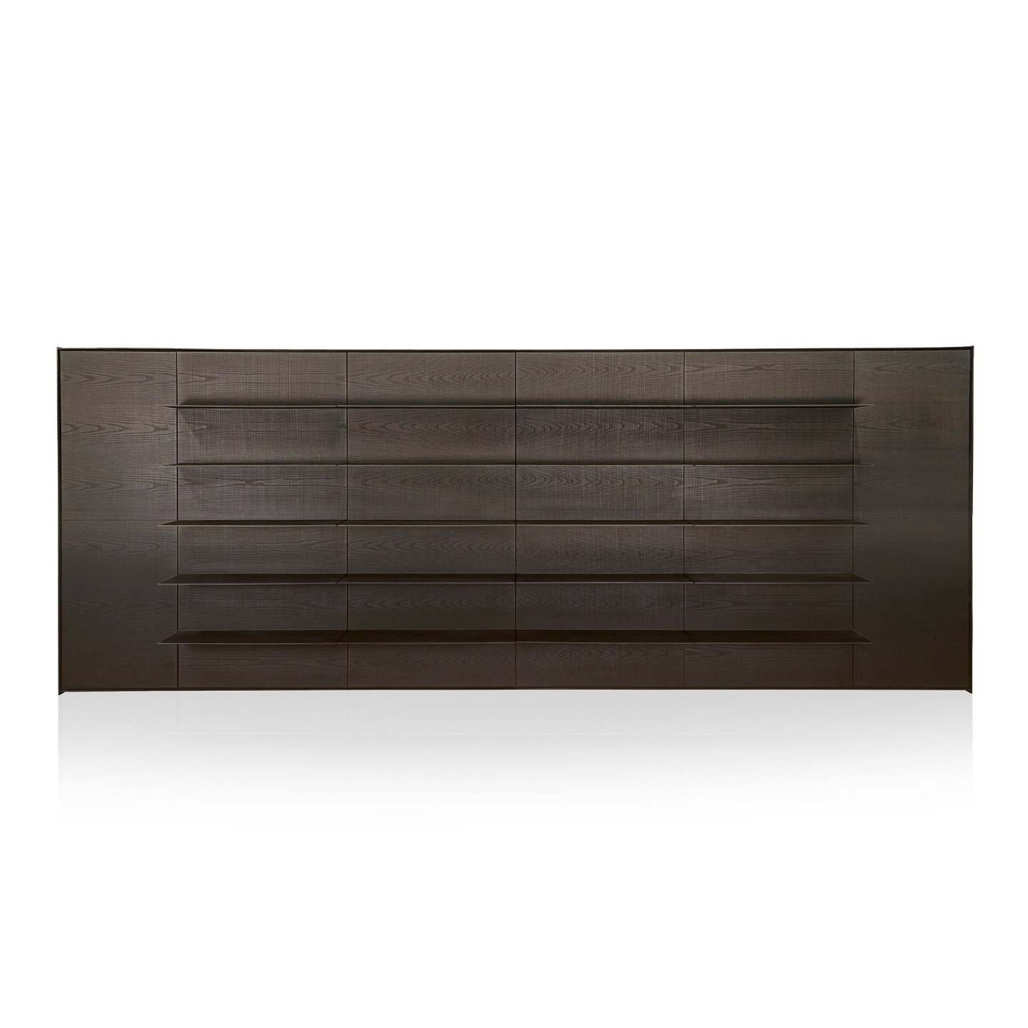 Com estrutura em aço carbono e revestida em lâmina de madeira, é possível compor projetos de estantes com diversas dessas prateleiras que auxiliam no apoio de livros e objetos de decoração.