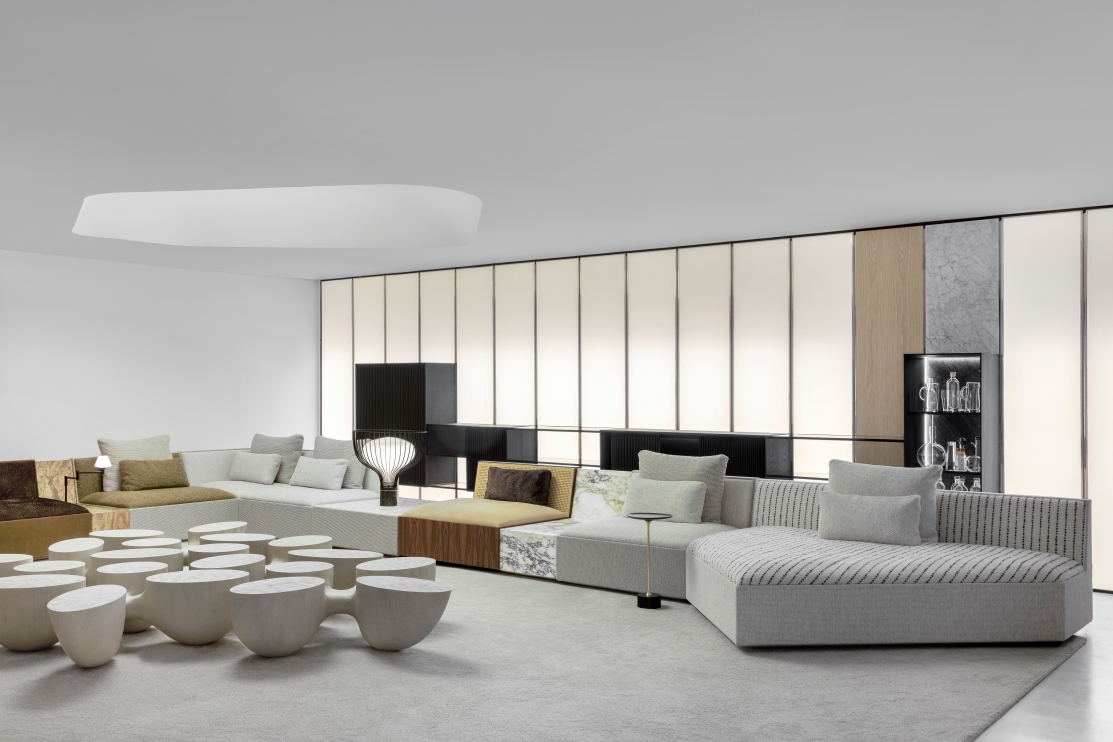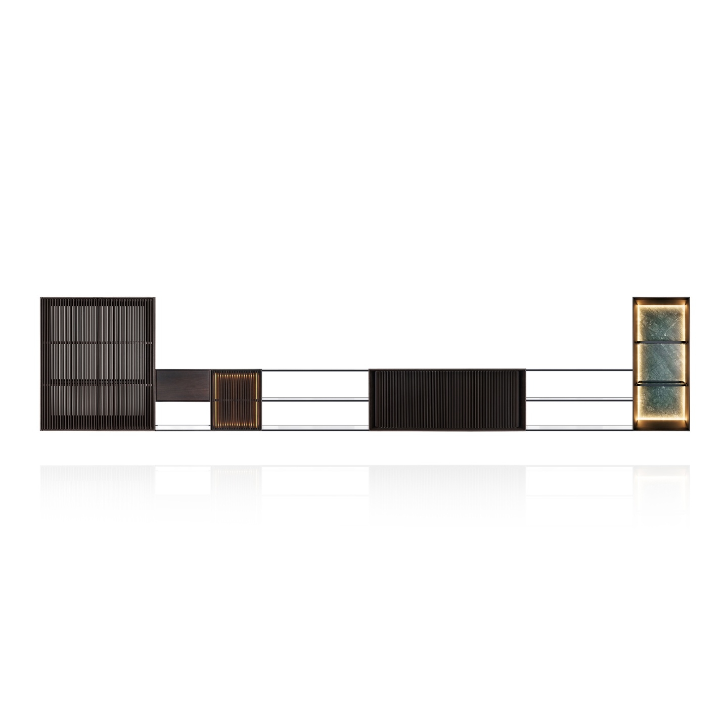 O sistema BSB traduz o encontro entre estrutura e leveza. Uma composição modular que combina materiais metálico, madeira, mármore e vidro, resultando em um design de linhas contínuas e ritmo equilibrado. A iluminação integrada realça volumes e texturas, revelando nuances sutis conforme o olhar percorre a peça. Versátil e escultural, o BSB se adapta a diferentes ambientes, mantendo a elegância essencial e o refinamento dos detalhes.