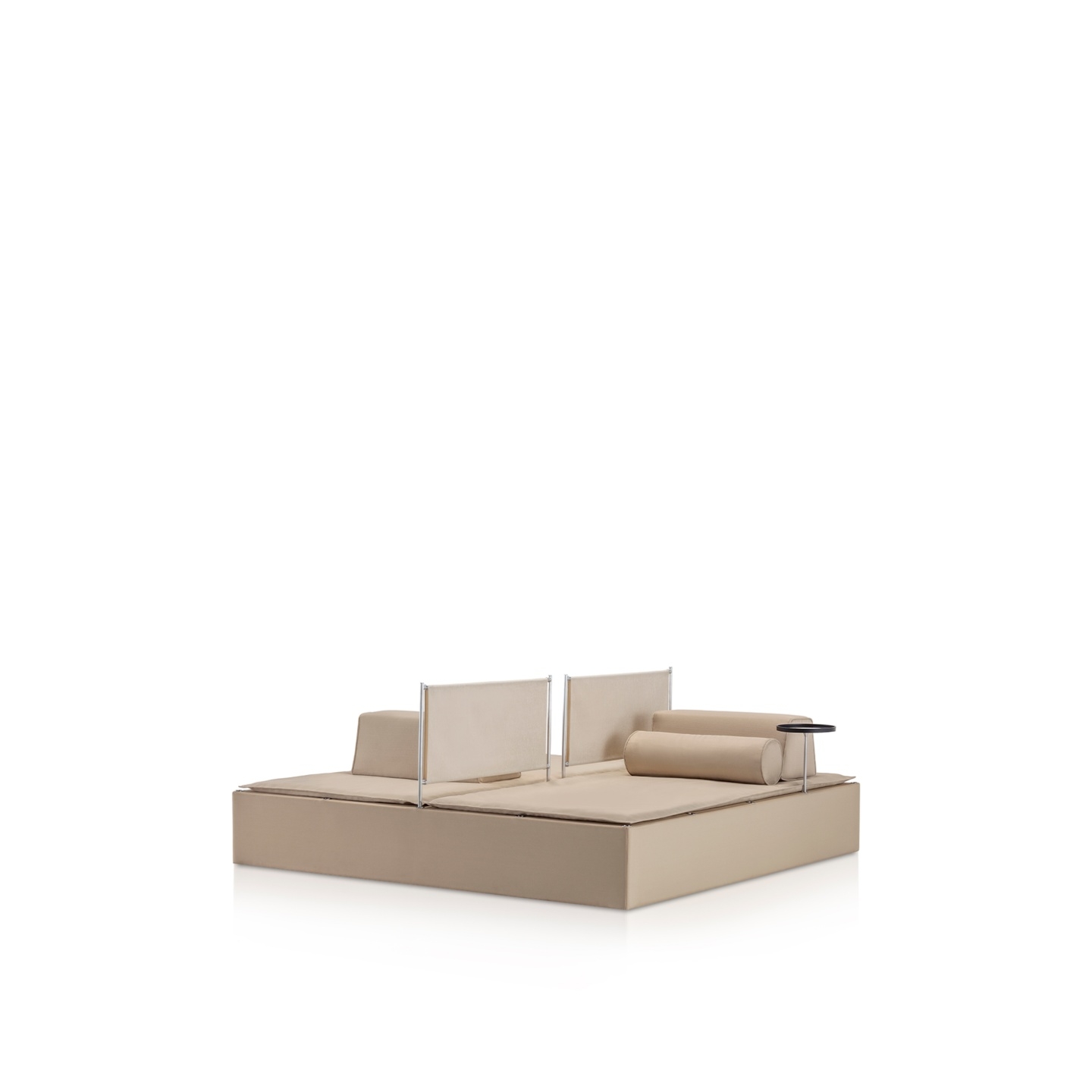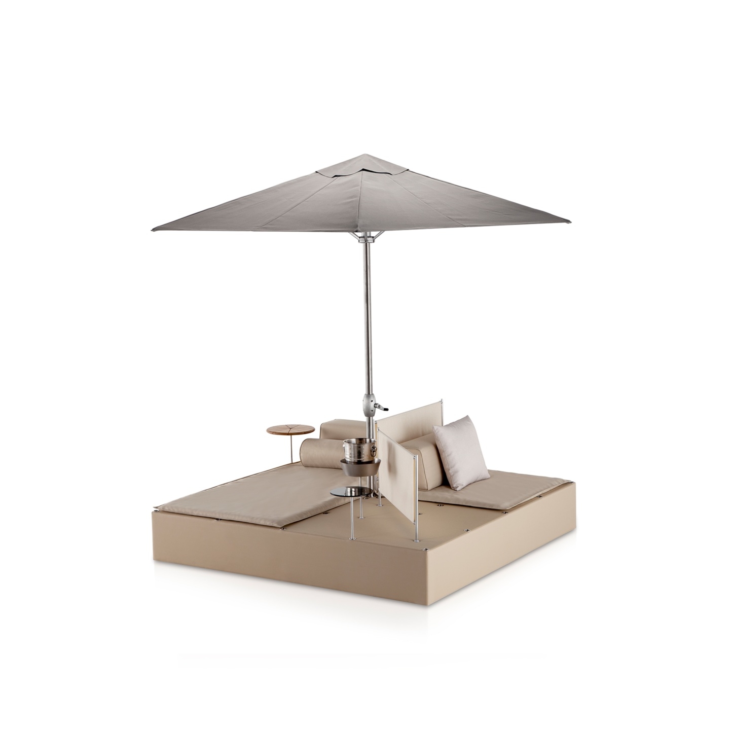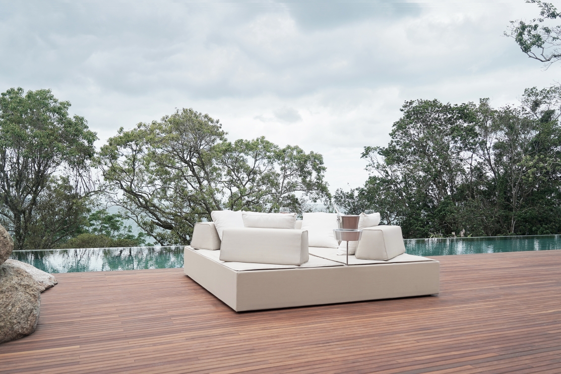Funcionalidade, flexibilidade e individualidade definem a plataforma Villa. Villa é o produto de um pensamento que partiu da necessidade do uso coletivo em espaço outdoor, como o de um hotel, um clube ou mesmo uma casa. Mesmo no coletivo, a individualidade é muito importante e a plataforma proporciona essa perspectiva de uso, oferecendo a flexibilidade na modulação de acessórios, como apoios, divisórias, espaldares, esteiras, cabana e ombrelone, onde as pessoas criam suas próprias soluções e adaptam aos usos e aos momentos do dia.
