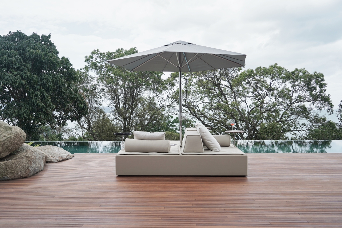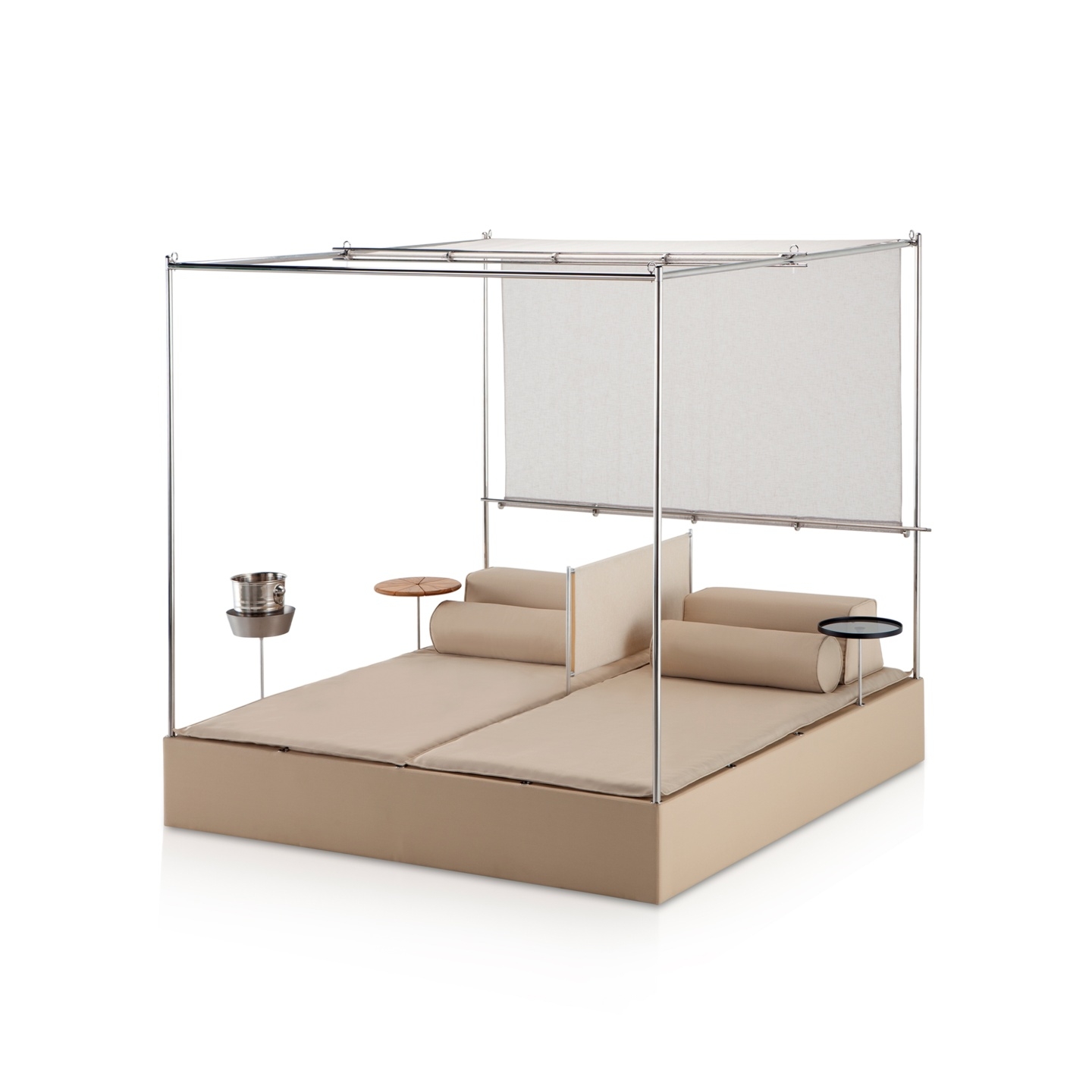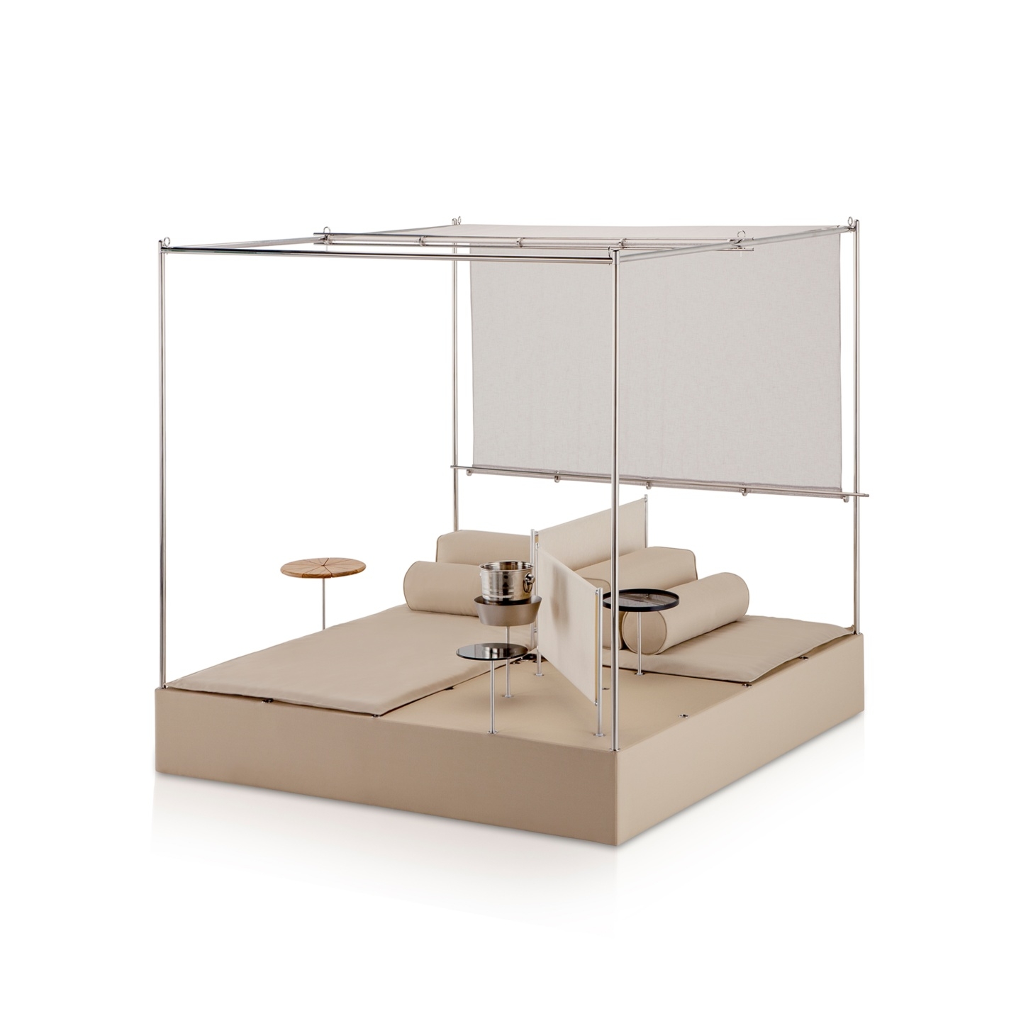 Funcionalidade, flexibilidade e individualidade definem a plataforma Villa. Villa é o produto de um pensamento que partiu da necessidade do uso coletivo em espaço outdoor, como o de um hotel, um clube ou mesmo uma casa. Mesmo no coletivo, a individualidade é muito importante e a plataforma proporciona essa perspectiva de uso, oferecendo a flexibilidade na modulação de acessórios, como apoios, divisórias, espaldares, esteiras, cabana e ombrelone, onde as pessoas criam suas próprias soluções e adaptam aos usos e aos momentos do dia.