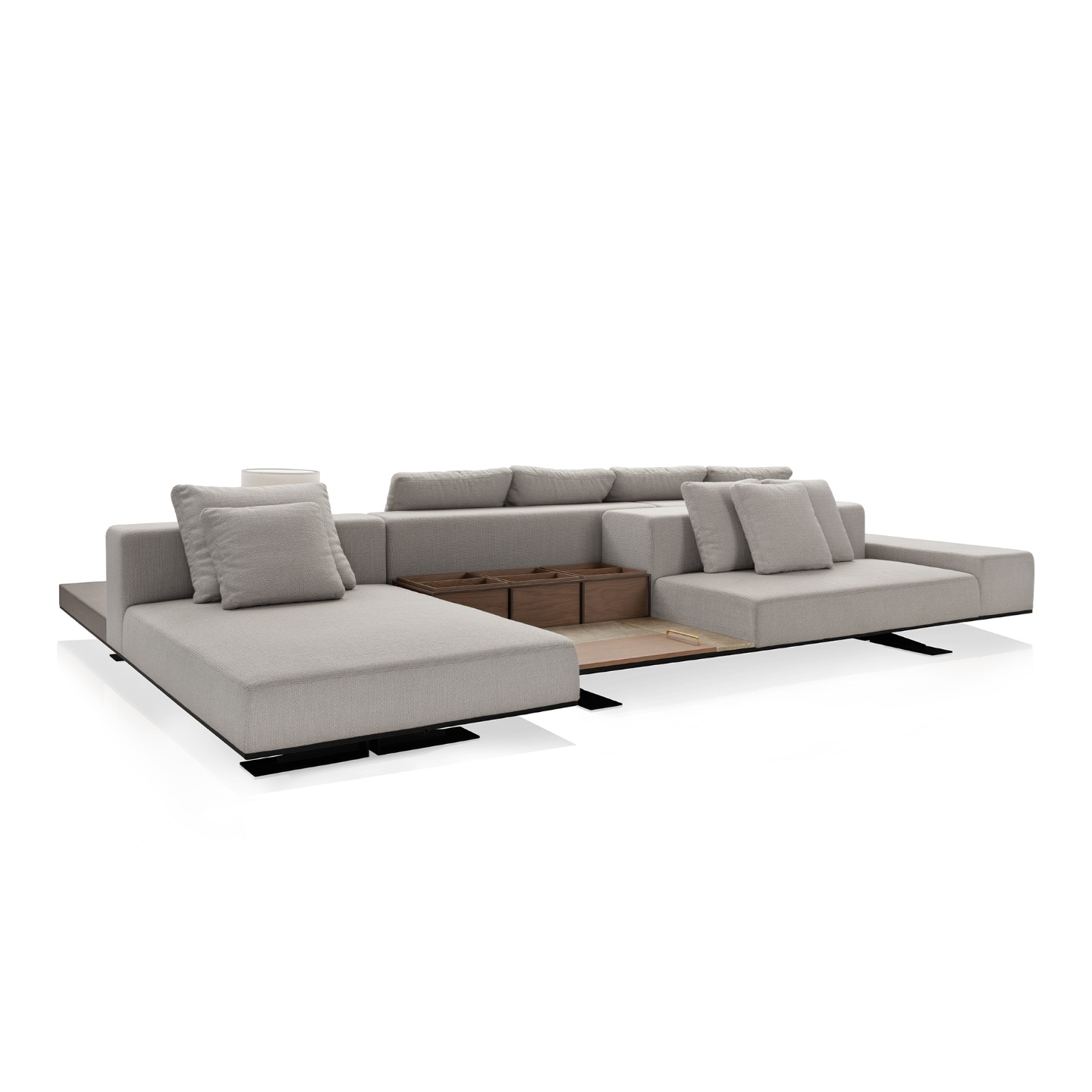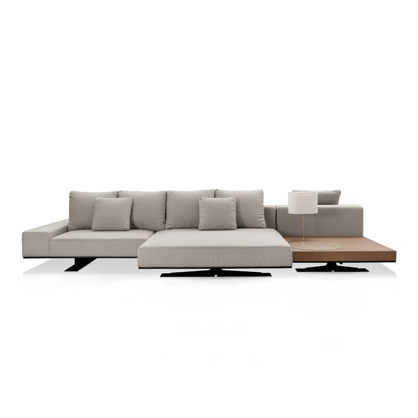 Assim como a premiada coleção de mesas de centro e aparadores, o sofá AIR é sistema modular que pode ser configurado tanto a partir das propostas pré-determinadas quanto sob medida, de acordo com as preferências usuário. Um sistema dinâmico e de soluções inteligentes. A ideia é que a peça possa sempre ser reinterpretada e renovada, bastando alternar o arranjo dos módulos ou buscar atualizações para o produto, uma vez que a base permanecerá a mesma. Permite bandejas, luminárias, vasos além de superfícies com diferentes revestimentos.