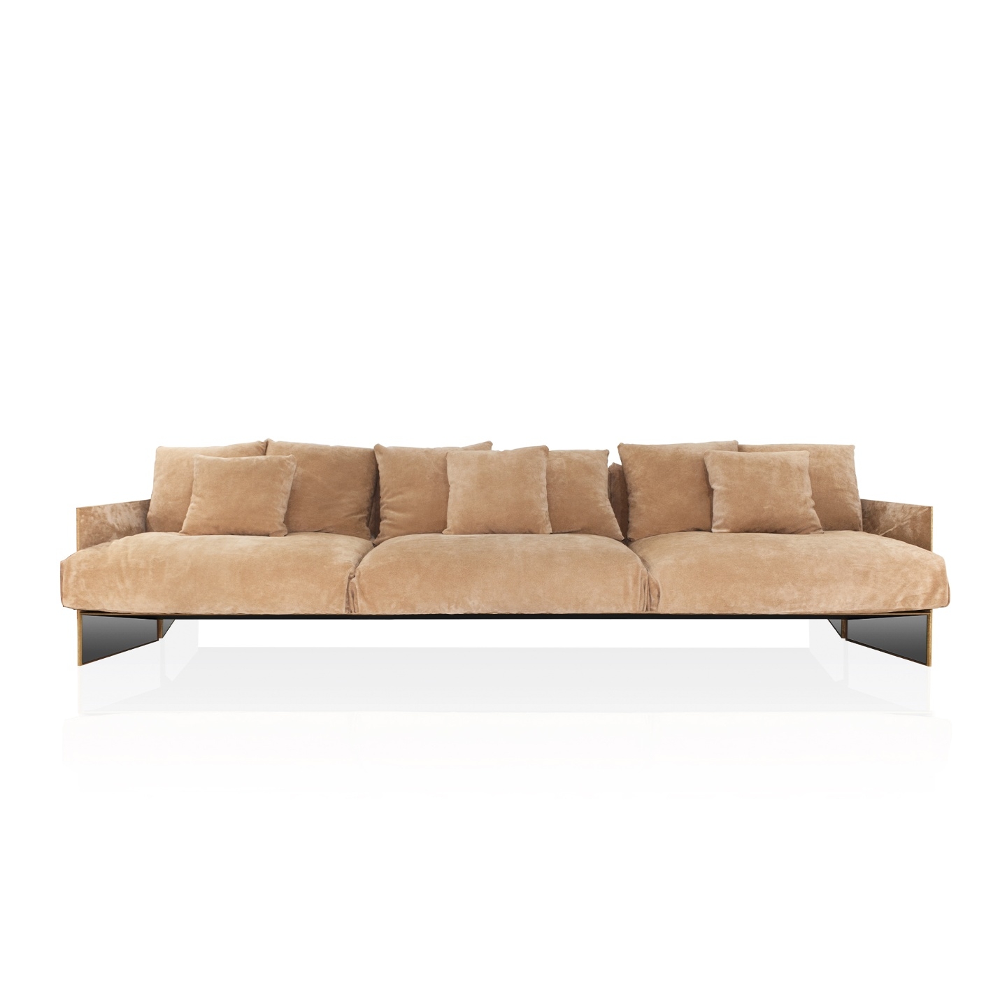 O contraste entre a simetria do desenho ortogonal da base elevada e a assimetria das grandes almofadas de pluma, atrai para uma agradável experiência no ambiente de estar. O sofá Matriz é uma expressão da assinatura do design contemporâneo.