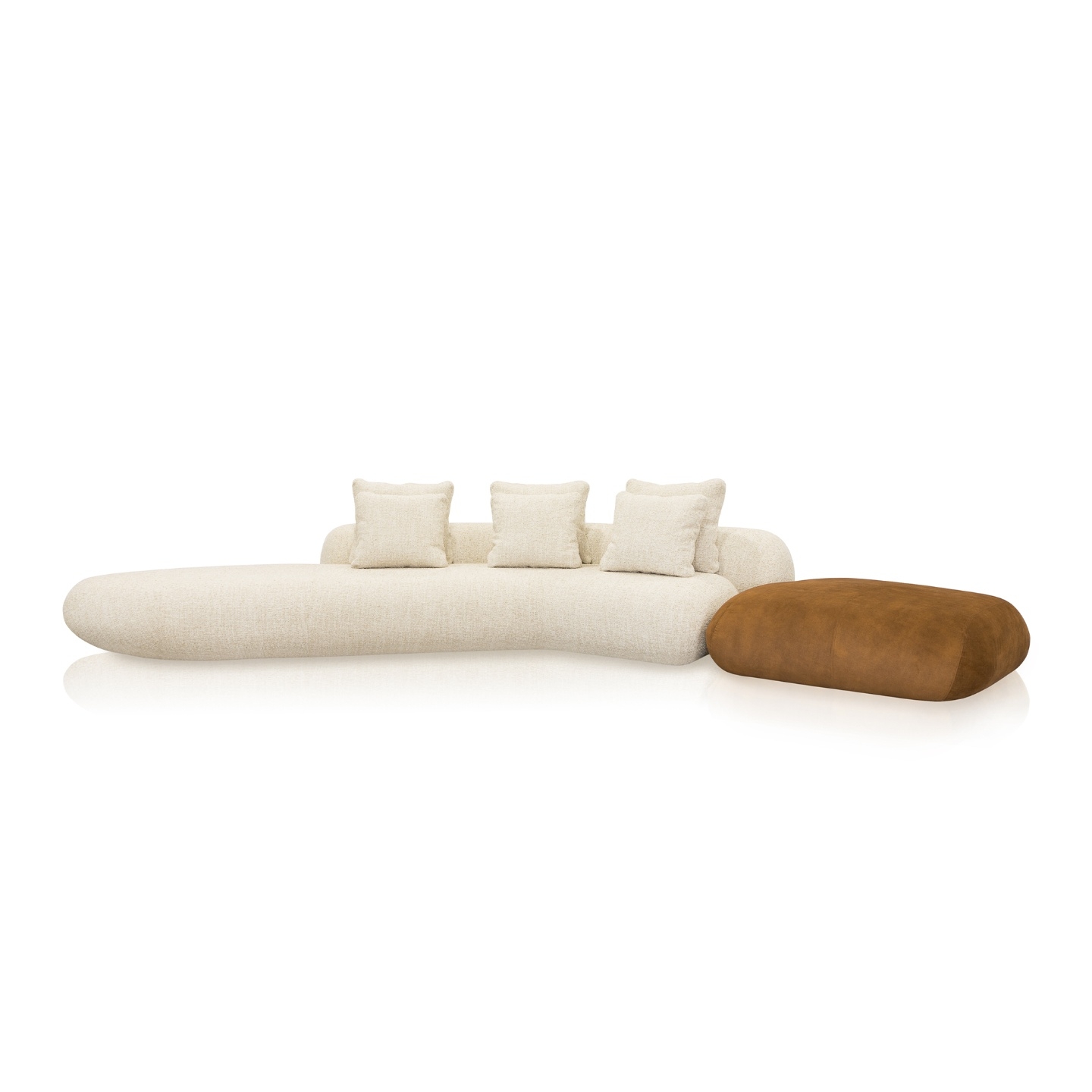 Assento, encosto, puff e almofadas soltos. Acompanha almofadas.