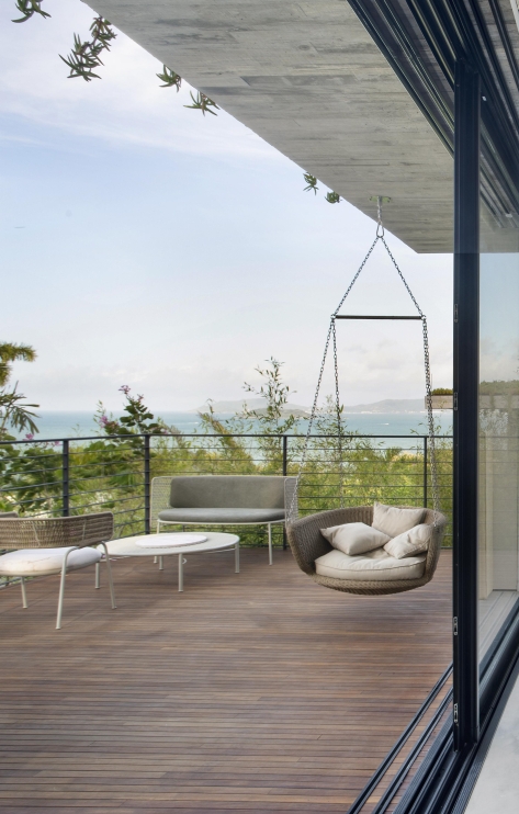 Preso por um único ponto no teto, o produto permite ao usuário o giro completo e um balançar suave. Com generosas almofadas no assento e no espaldar, é um elemento perfeito para o relaxamento em áreas de transição entre interno e externo.