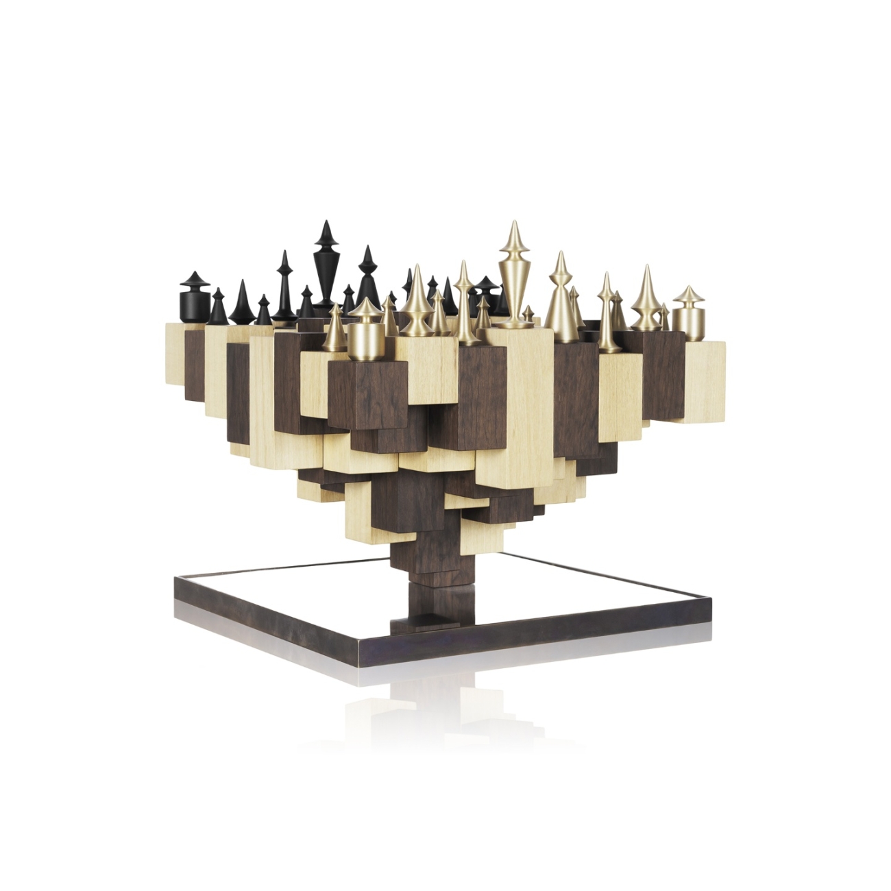Chess, um tabuleiro de xadrez não convencional: ele desafia a planicidade, transcendendo sua função prática para se tornar uma peça de arte extraordinária. Cada peça é criada como se fosse uma joia. É mais do que um jogo; é uma declaração de habilidade artesanal e excelência em design.