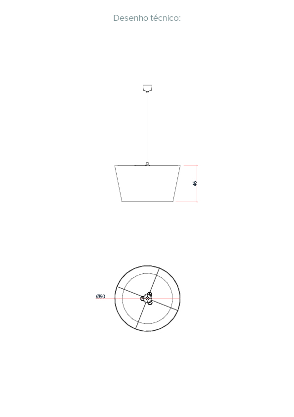 Ø 35 7⁄1 | 27 9⁄16 x 19 11⁄16 in | Bocal Inferior: Ø 35 7⁄1 x 19 11⁄16 in | Bocal Superior: Ø 27 9⁄16 x 19 11⁄16 in